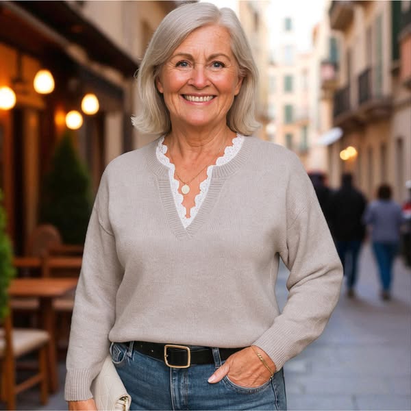 Elsbeth er laget for deg som ønsker et tidløst plagg med en moderne vri. Den dype V-halsen med delikat blondekant gir et sofistikert preg, mens den rene utformingen gjør den lett å style til både hverdag og mer pyntede anledninger.